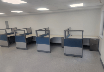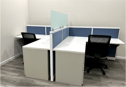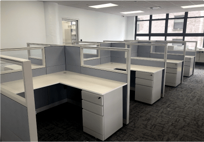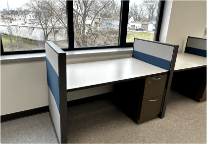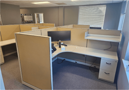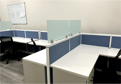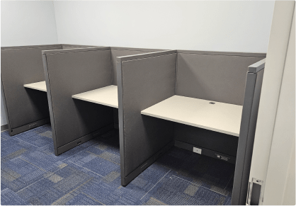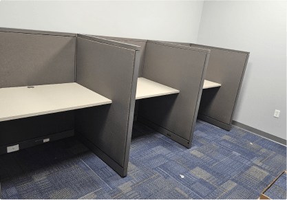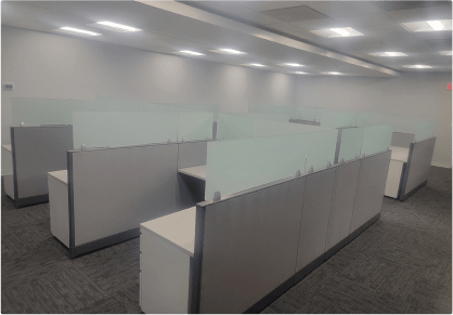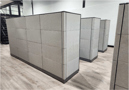 Our cubicles are available in 15+ colors to suit your preferences and workspace aesthetics. Additionally, all fabric used in our cubicles is acoustic fire-resistant material sourced from Knoll, ensuring both style and safety.