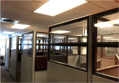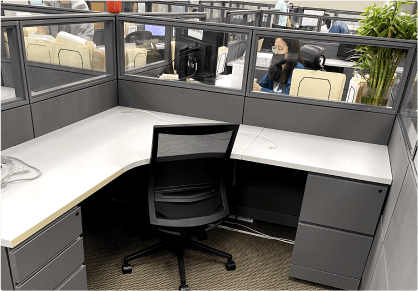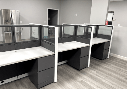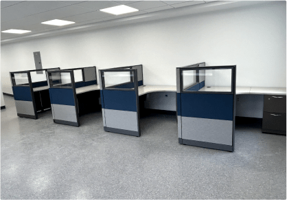 Pick from a variety of cubicle sizes, heights, colors, and features – including glass panels, power, and storage.